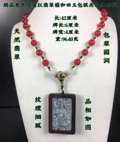 20_精品天然灯笼红翡翠镶和田玉包银关公牌项链,天然成品,包浆厚重,皮壳老辣,品相完美