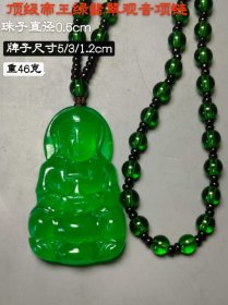 88_顶级帝王绿翡翠观音牌子项链。重46克