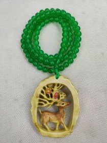 131_珍藏,翡翠项链和“鹿鹿畅通”挂件一套。