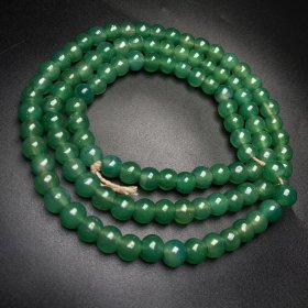 260乡下偶遇老者珍藏绿玛瑙佛珠项链 尺寸:10毫米 108颗 绿玛瑙是玛瑙家族中比较珍贵的品种,绿玛瑙的颜色很像十分高档的翡翠,艳丽大方,而且具有灵性作用,功效强大,十分受人们喜爱、玛瑙是佛教七宝之