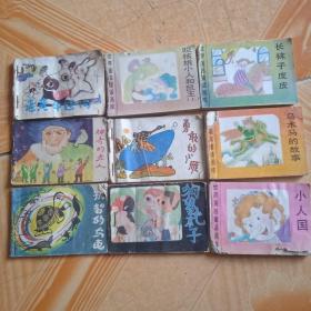 128开连环画《老黄牛过河》《神奇的老人》《机智的乌龟》《咬核桃小人和鼠王上》《勇敢的小雁》《狗逮耗子》《长袜子皮皮》《乌木马的故事》《小人国》9本合售