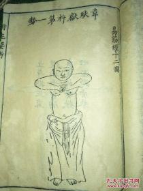 罕见武术体育文献:易筋经 上下卷,目录前面的序残,.正文到五十多页,后面缺.有许多木刻图,中间又有易筋经,洗髓经两个版权页,看不懂.有附录经验药方