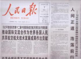 2018年11月7日 人民日报 致信祝贺第十二届中国国际航空航天博览会开幕强调 推动国际交流合作为世界各国人民共享航空航天技术发展成果作出贡献 人间正道 浩荡前行 出席首届中国国际进口博览会纪实 经济全球化是不可逆转的历史大势 论在首届中国国际进口博览会开幕式上的主旨演讲 同主要国际经济金融机构负责人举行第三次1+6圆桌对话会 推进高水平开放高质量发展 共24版