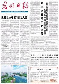 光明日报 2021年8月26日(本报今日16版齐全)在河北承德考察时强调:贯彻新发展理念弘扬塞罕坝精神,努力完成全年经济社会发展主要目标任务;深圳试行个人破产制度具有重要示范价值;“两弹一星”精神述评;实现中华民族伟大复兴进入了不可逆转的历史进程;23年的守护只为一片林海;苏炳添:一个不相信极限的“追风人”;成都发现先秦时期聚落遗址;大庆古龙页岩油勘探取得重大突破