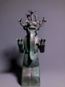 战国时期 镇慕九头 龙 兽直径14厘米 宽10厘米 高39厘米重6.8 斤备注 头部装饰有多个龙形图案,龙在中国文化中象征着权威力量和吉祥,