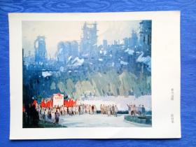 5678精品70年代经典印刷品中国布面水彩画及新意象画派创始人著名画家设计家教育家陈培荣作品【春风送暖】纸制品老物件收藏欣赏学习研究怀旧影视生活道具