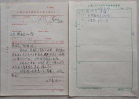 上海人民美术出版社年画编辑室副主任,中国民间剪纸研究会顾问,现代年画家徐飞鸿签批,年画宣传画编辑室副主任,著名画家黄妙发致年画家陈明信札(上海人美签单)