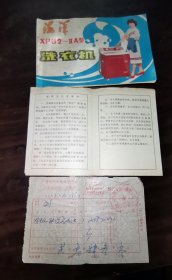 海洋(洗衣机)说明书、检修单,1983年购机发票