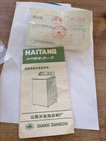 1987年海棠牌洗衣机说明书(带发货票)