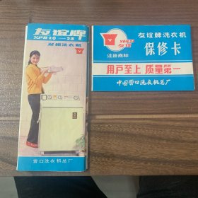 友谊牌:双桶洗衣机说明书 十 保修卡