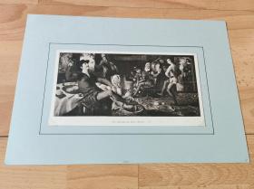 19世纪木刻版画《风景画:塔法的橘子市场》(Orangenmarket in Taffa)-- 奥地利维也纳艺术画廊出版发行 -- 后附卡纸30*21厘米,版画纸张20*15厘米