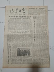 北京日报1979年4月20日(4开四版)在经济管理中加强思想政治工作。全总发出关于五一纪念活动通知。四花需要强有力的思想政治工作。学雷锋学英雄树新风创三好。邓副委员长帅人大代表团回到北京。青少年们努力做又红又专的革命接班人。实行专业队造林是加强绿化的好办法。