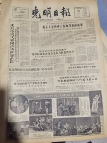 《光明日报》【我海军防空部队在华北地区上空击落美制蒋匪P2V型飞机一架,林彪元帅颁发嘉奖令表扬立功部队;美机悍然轰炸康开我经济文化代表团驻所,我工作人员五人受伤一人牺牲(高云鹏);1964年京剧现代戏观摩演出,有草原英雄小姐妹等剧照;一曲革命接班人的赞歌——漫谈京剧《草原英雄小姐妹》,有剧照】