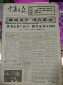 生日报重庆日报1969年7月20日(4开四版) 号召新共全党开展学习毛主席著作的运动; 胜利面前不停步,继续革命永向前; 让毛泽东思想永远占领学生校外阵地; 造就无产阶级革命事业接班人的大事;