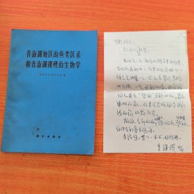《青海湖地区的鱼类区系和青海湖裸鲤的生物学》签赠本,西北工业大学李继瓒教授签赠 山西大学殷源洪教授。附信札一页如图。科学出版社1975年年一版一印(实物拍图,外品内页如图,内页干净整洁无字迹,无划线)