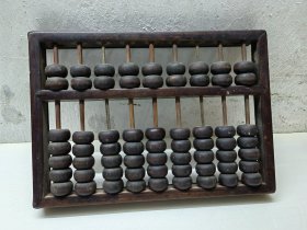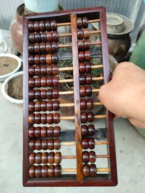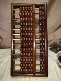 19位大算盘子,原来大户人家使用的,广式做工,尺寸比较大,中梁镶嵌有骨钉,长53cm,木质为紫檀或者黄花梨或红木自定,宽18.5cm。结实牢固,寓意精打细算,神机妙算,品相如图,保真保老