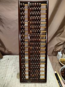 15位算盘子,15一535号,广式做工,中梁镶骨钉,寓意如意算盘,神机妙算,尺寸长42厘米宽18厘米,木纹漂亮,包浆一流,结实牢固,木质为红木紫檀或者黄花梨自定,保真保老。