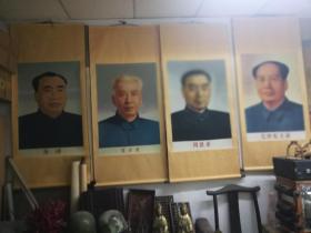 秀画;卷轴装裱4伟人;毛主席、周恩来、朱德、刘少奇{4幅一起走}