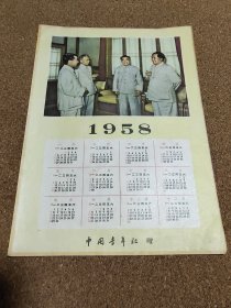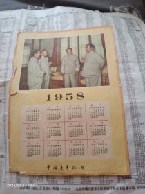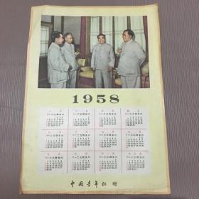 1958年年历画(四伟人),中国青年社赠,16开,架4