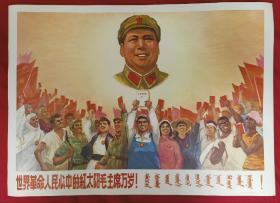 伟人宣传画2开《世界革命人民心中的红太阳毛主席万岁画》(蒙文,红宝书)