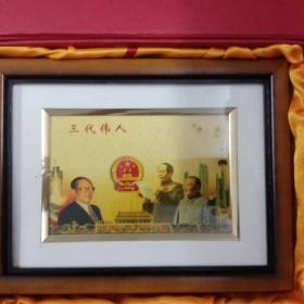 镀金画《三代伟人》(此画宽19.5厘米,高10厘米;彩印效果极佳,值得收藏)