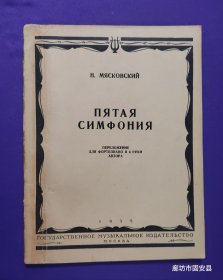 (签名本)老乐谱 俄文原版 ПЯТАЯ СИМФОНИЯ Н.米亚斯科夫斯基 《第五交响曲》 (作者本人改编) 为四手联弹钢琴而作
