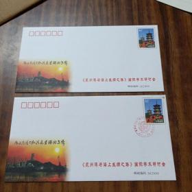 泉州港与海上丝绸之路国际学术研讨会纪念封 2张合售(一张有盖记念戮、一张没盖)邮票图案泉州东西塔图案