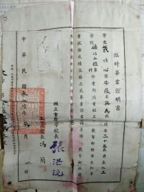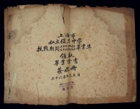 民国 私立沪江大学 毕业证书(校长余日宣签发)民国 沪江大学商学院肄业证书(院长郑世察)民国 上海南洋中学毕业证书(校长王培孙亲笔颁发)有原封加肄业证的老照片共5件合拍!学生谭永翔一人所持!
