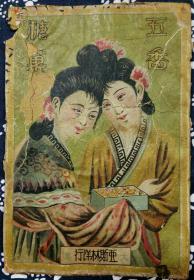 清末 辽宁 大连 亚斯林洋行 五香糖果 美女图 老广告 13*19.5cm 7成