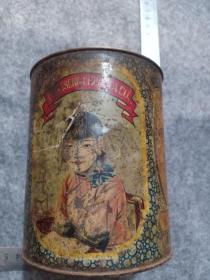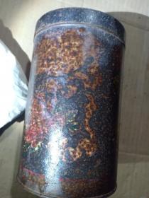 箱28,民国 美女图茶庄茶筒茶叶罐,锈的厉害,内带一包老茶叶,16*10.5cm