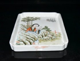民国粉彩美女图四方盘【2.5x23.5x17.5cm 】