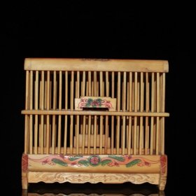 乡下收的清代牛骨手工雕刻美女图大鸟笼摆件宽15厚6.5高13厘米
