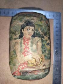 晚清,俄国,美女牙粉广告铁盒,内部有美女图,少见