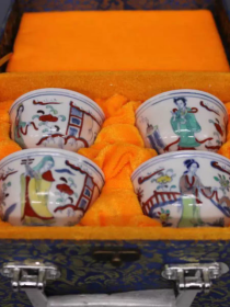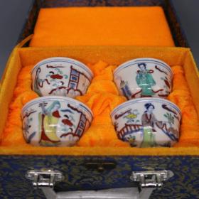 明斗彩美女图茶杯一套