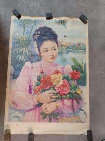 1984年1版1印宣传画 乳山县文化馆 赵殿玉 《知音》富家小姐美女图。76*52.5cm