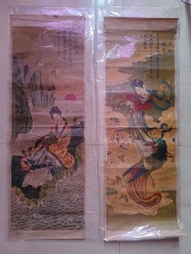 华三川瑶池赴会美女图彩色丝织画,六七十年代杭州丝织工艺厂制,尺寸约62*33,品佳如图。