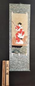 日本回流书画手绘美女图立轴(带木盒) D2165