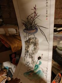 兰花美女图,画工一流。水墨晕染技法达炉火纯青之境界,有薛林兴风格。