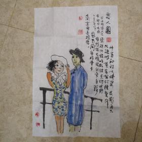 信誉保真名人字画。美人图美女图恋人图。著名作家藏书家。70×46厘米。。保真售出不退。以免误会。请看好。可以提前电话或消息联络。