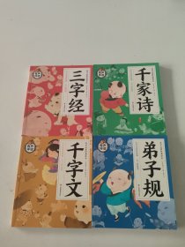 (塑封正版全4本)国学启蒙经典故事 全4册 千字文+千家诗+三字经+弟子规 大字注音彩绘版 3-6岁早教启蒙益智认知书 全本三字经弟子规千字文无删节、千家诗精选名家格律诗128首