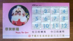 年历卡:狗.恭贺新喜.往日的积累.今日的拥有.前面年历卡.1994年.共1张