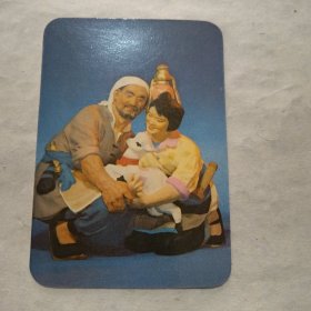 年历卡 年历片:1977年 彩塑(接羔)1枚保真