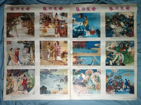 五十年代老年画:张羽煮海,16张一套,吴光宇绘画,原为四条屏4张一套,被原藏家裁剪为16张,每张尺寸约为26.8乘18厘米。
