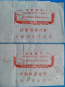 人民公社信用社活期存款存折(吴县湖滨公社)2本合售。