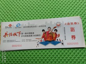 门券 第一届乒乓球挑战赛(本溪赛区) 2010年20日一一8月22日