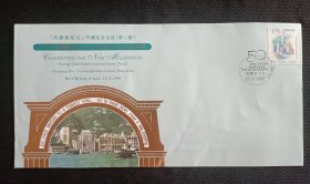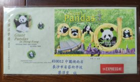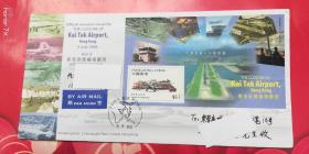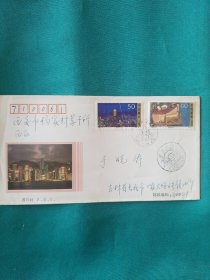 98-28.1998.7.9,浙江长兴县莫克荣邮隆回县委大院,靣贴T6.4-1一枚,靣左印香港特别行政区园形红色图章,封靣淡红底白条纹,绘成香港高大建筑群及海岸舰船