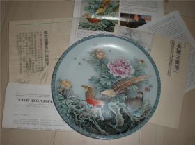 皇家景德镇瓷器出口艺术彩盘(瓷器收藏):中国庭院花卉之赞颂第二集温和之美德盘子(张松茂绘制)带原盒和鉴定证书及出口核准