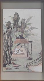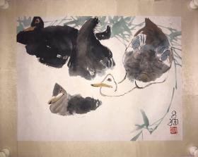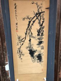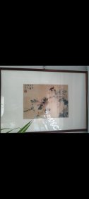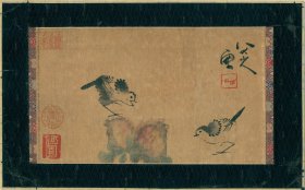 朱耸 八大山人 中国画鼻祖 水墨写意画高峰的代表 明朝宗室,明末清初画家、书法家 水墨写意花鸟画旧裱小品(画在绫纸上)一幅 (品如图)(26x15)上有(王鹏运,况周仪,同审定)印章及其他收藏印章