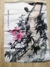 已故!中国美术家协会会员,河南大学美术系教授。师从张振铎 关山月 汤文选等著名国画大师。【陈良才;花鸟画作品一幅104x53.5】原装原裱立轴!保真出售!