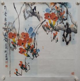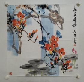 保真书画,中国美院博士研究生,郑墨 花鸟画一幅,尺寸69×70cm,软片。 郑墨,1965年生,先后毕业于浙江师范大学,中国美术学院博士研究生。中国美术家协会会员,西泠书画院专职画师。